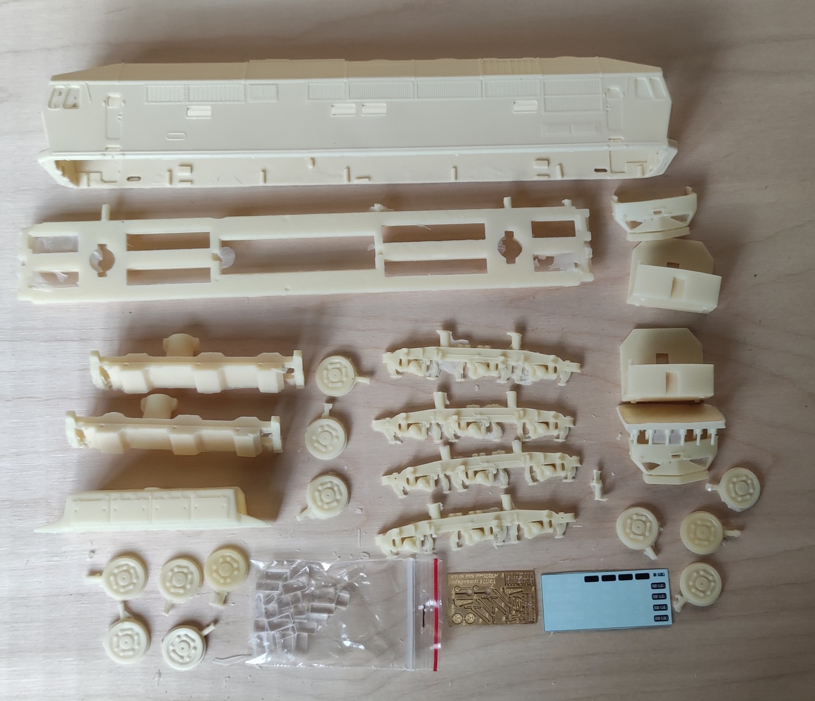 Кит дизельпоезада ДР1. Комплект деталей для сборки состава из 4вагонов. В комплекте: Корпуса -4шт, рамы с подвагонным оборудованием -4шт,интерьер пассажирских салонов -4шт,кабины машиниста -2шт, тележки с колесными парами -8шт, суфле -6шт, остекление комплект , поводки межвагонных соединительных механизмов с пружинами комплект. Набор поставляется в подсобранном состоянии,комплектность согласно фото. Дополнительные детали прикладываются в пакетиках. фото 1фото 2<фото 3 фото 4 |