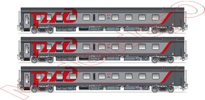 Neu 2015. Набор #2 из трёх спальных вагонов поезда № 23 Москва-Париж, тип WLABmz. Номера вагонов 256, 257, 258.